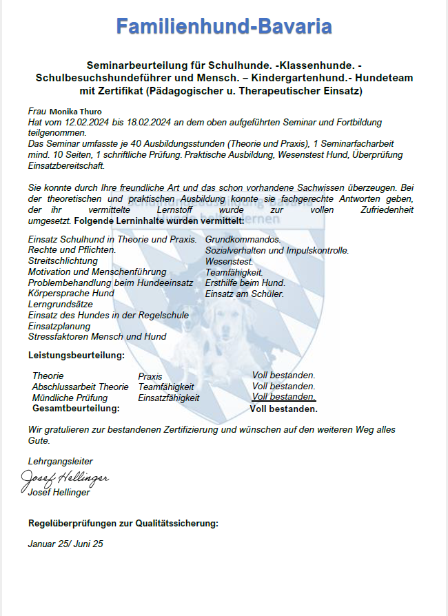 Seminarbeurteilung Familienhund-Bavaria