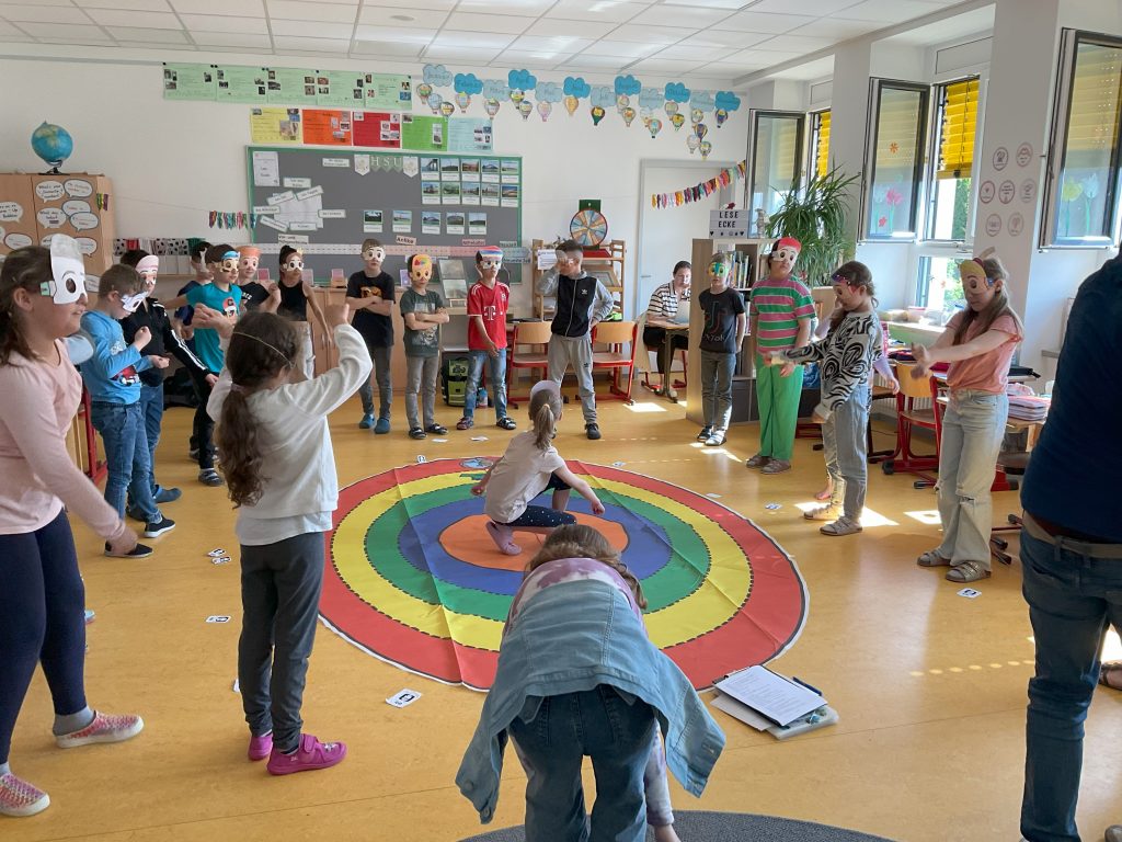 Für die Schüler:innen der Klasse 3a der Lindenschule in Bellenbergstand am 22. Mai eine ganz besondere Unterrichtseinheit auf dem Programm. Im theaterpädagogischen Workshop, für den dieSchule im Rahmen ihrer Bewerbung für das Partnerschulen-Programm der LEW-Bildungsinitiative 3malE per Los den Zuschlag erhalten hatte, bearbeitete die Klasse gemeinsam mit Kathrin Jung-Can und Gernot Reuss, Theaterpädagogen:innen des Jungen Theater Augsburg, das Thema „Internet und Freundschaft“. Dabei wurden eigene Erfahrungen aufgegriffen und konkretisiert sowie verschiedene Methoden, wie Kennenlern- und Teamspiele, Brainstorming oder szenisches Spiel eingesetzt. Alle teilnehmenden Schüler:innen spielten eine Rolle und Szene. Es erfolgte ein intensiver Austausch zwischen Darsteller:innen, Publikum, Lehrkräften und Workshopleitung, welche immer wieder selbst in unterschiedliche Rollen schlüpften und die Schüler:innen so mit den Folgen ihres Handels konfrontierten. Die Kinder verfolgten den gesamten Vormittag sehr aufmerksam und zeigten sich gegenüber den Inhalten sehr offen und interessiert. So fragte am Ende des Tages der eine oder die andere, ob die beiden Theaterpädagog:innen nicht bald wieder an die Schule kommen möchten.