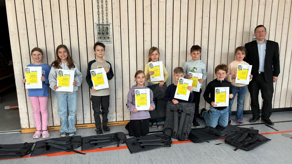 Ein besonderer Höhepunkt der Veranstaltung war die Anwesenheit von Herrn Schlegel, ein Vertreter der örtlichen Raiffeisenbank Schwaben Mitte eG, der die Preise persönlich überreichte. Unter dem Applaus aller Kinder und Lehrkräfte wurden die Siegerinnen und Sieger nach vorne gebeten, wo sie stolz ihre Preise entgegennahmen.